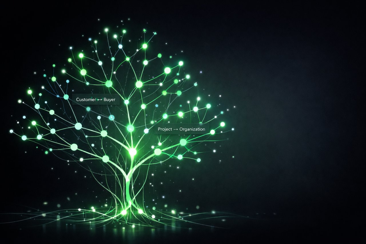 3. A graph representation of the relationships between data elements, such as “projects belong to organizations” or “order 1234 contains a subscription to service X.”